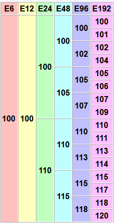 Armed with this resistor value, you jump into your preferred distributor catalogue, and you search for the exact resistance value, but you are surprised to find zero search results. So, what went wrong you ask? Nothing went wrong, it’s just that resistor manufacturers make resistor values in accordance with ‘Standard EIA Decade Values Table’ and the values are normalised. If you click on the image below embedded in the image, you should be looking at my go-to page. You may also hear this colloquially referred to as the ‘E-series’, which I assure, in this instance, has nothing to do with a premium German car manufacturer or 90s UK rave culture.
